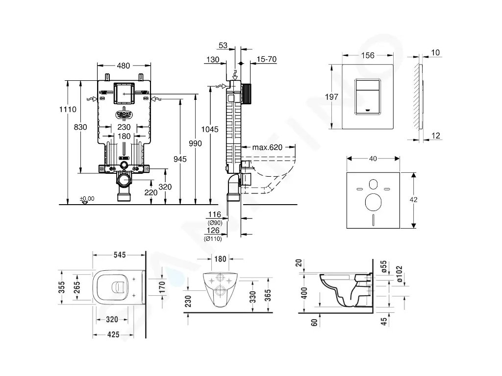 - předstěnový instalační modul Grohe Uniset (38643001), splachovací nádrž GD2