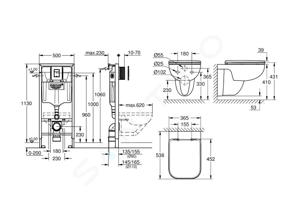 Grohe SANI15BB1103 - Set předstěnové instalace, klozetu a sedátka Start Edge Ceramic, softclose, tlačítko Even, chrom