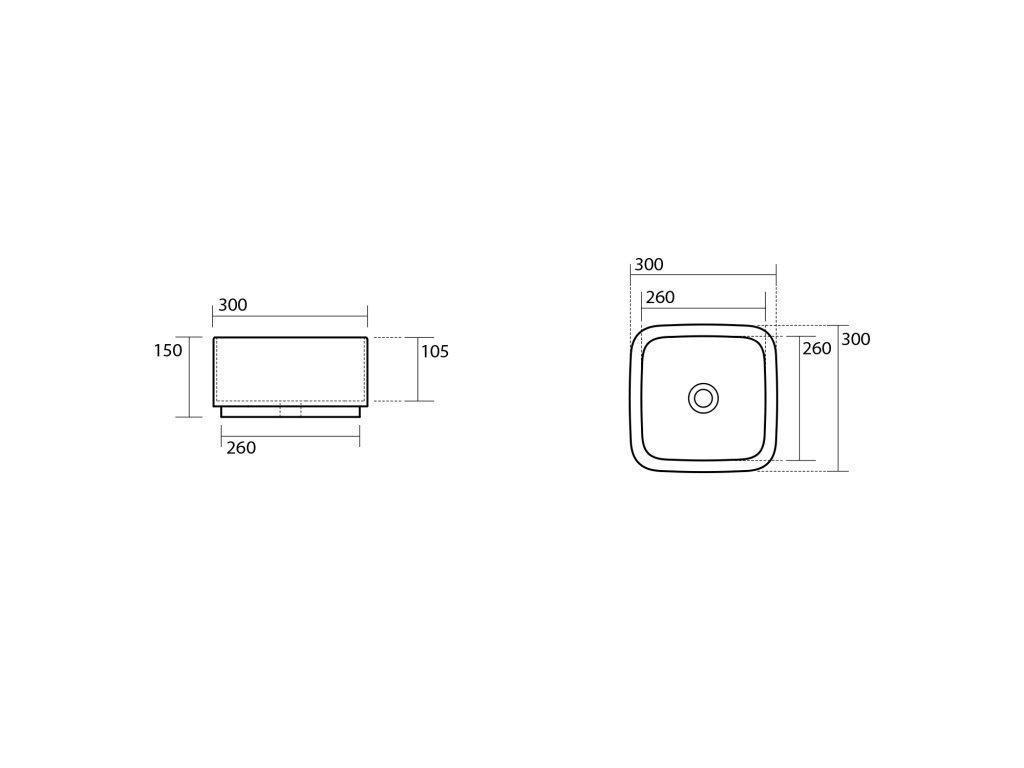 HAKO keramické umyvadlo na desku 30x30cm, černá mat