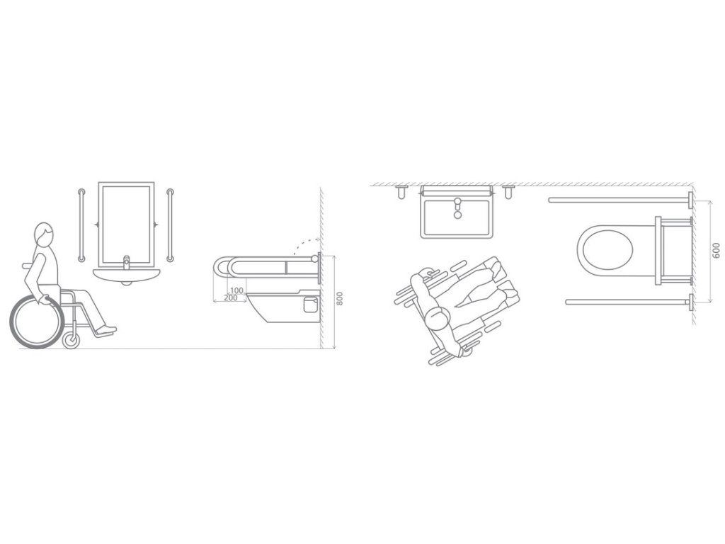 HANDICAP opěrné pevné madlo tvar U 813mm; černá mat