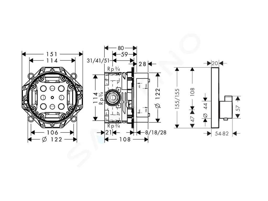 - vhodné pro všechny sprchové, vanové a termostatové vrchní sady pro podomítkové instalace