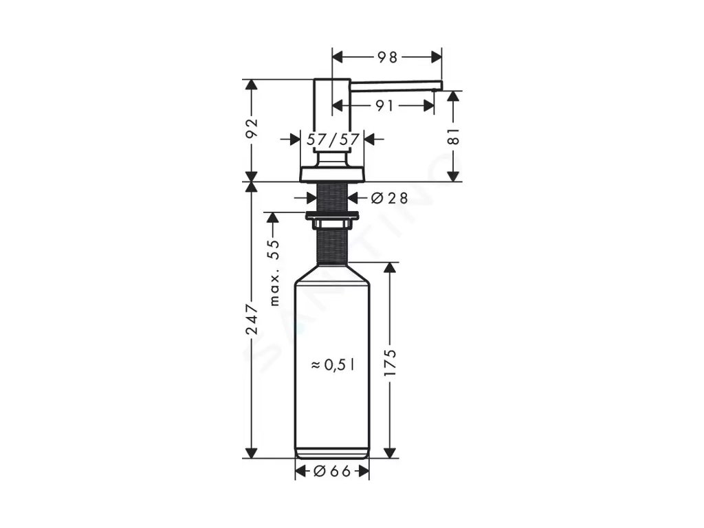 Hansgrohe 40468800 - Dávkovač mycích prostředků A71, 500 ml, nerezová ocel