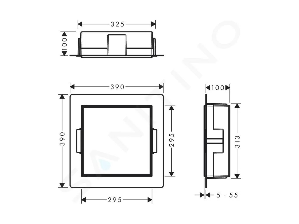- rozměry pro instalaci: 313 x 325 x 100 mm (VxŠxH)