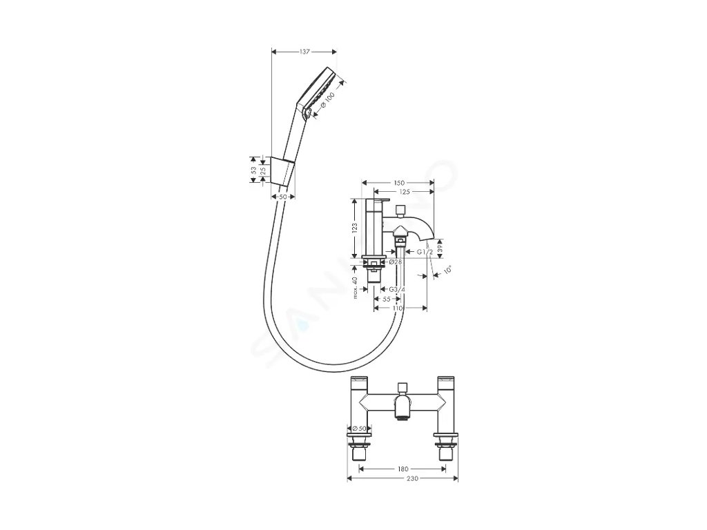Hansgrohe 71461670 - Baterie na okraj vany s příslušenstvím, 2-otvorová instalace, matná černá