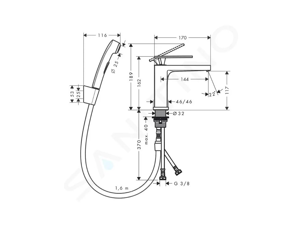 Hansgrohe 73210670 - Umyvadlová baterie s výpustí Push-Open a bidetovou sprškou, EcoSmart, matná černá