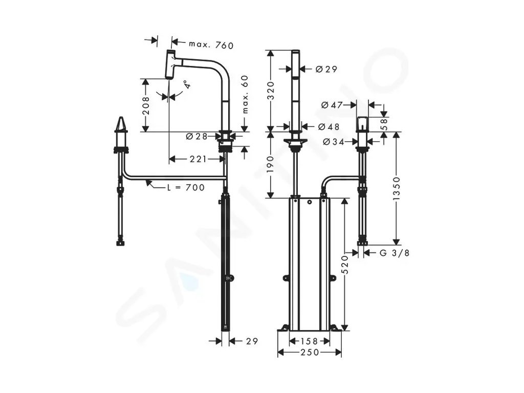 - hadice se vytahuje až 76 cm a zaručuje příjemnou práci a volnost pohybu v okolí dřezu