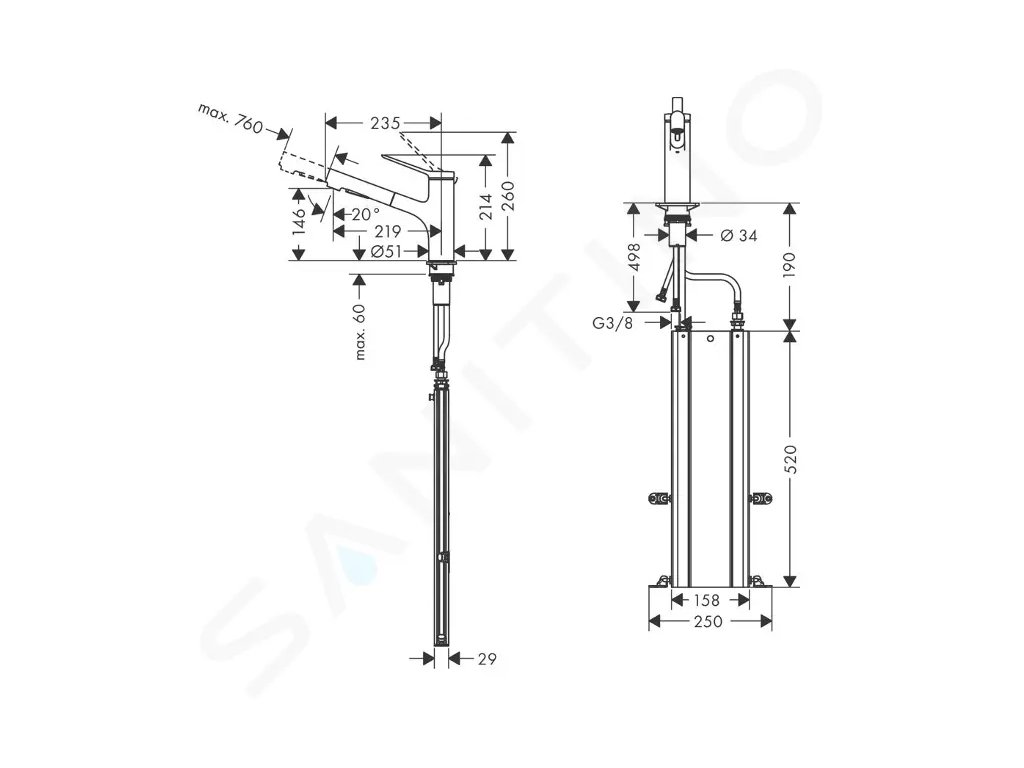 Hansgrohe 74821000 - Dřezová baterie s výsuvnou sprškou, sBox, chrom