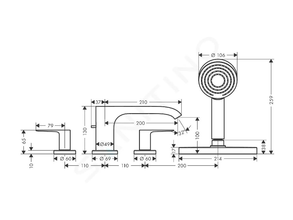 - vhodné pro instalace na okraj vany nebo na vanový sokl