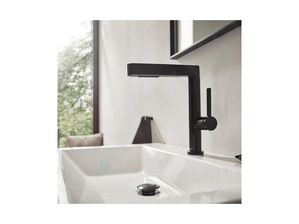 Hansgrohe 76063670 - Umyvadlová baterie 230, s výpustí Push-Open a výsuvnou sprškou, EcoSmart, matná černá