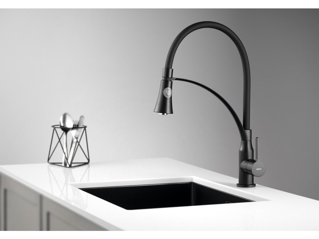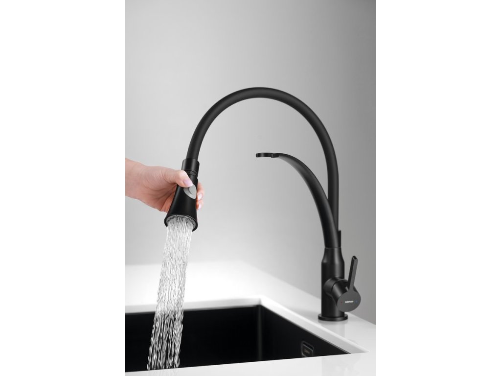 HEBE stojánková dřezová baterie se sprškou, černá mat