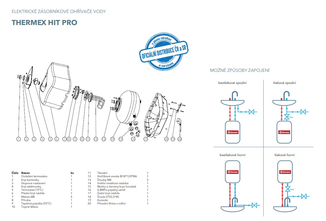 | Typ ohřívače: | Tlakový, Beztlakový |