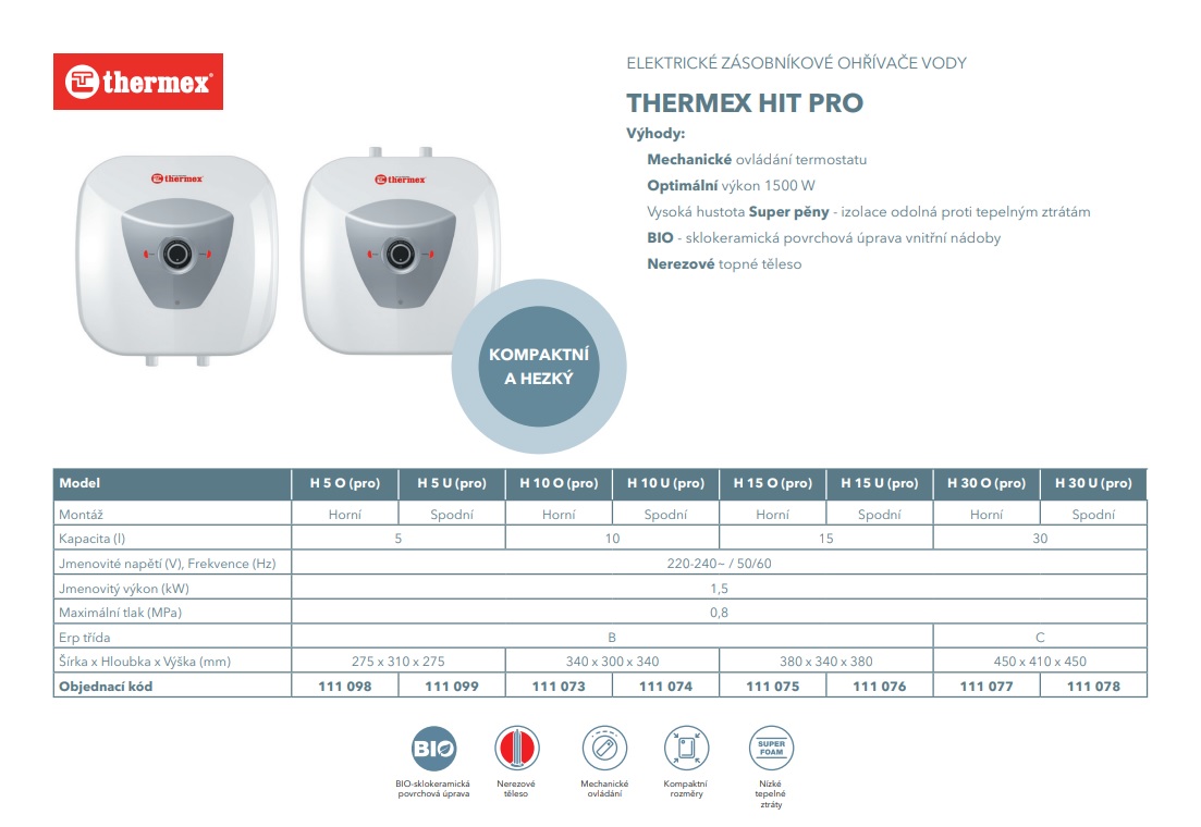 HIT PRO H 10 U - elektrický ohřívač vody spodní 10l - TLAKOVÝ/BEZTLAKOVÝ (HITPROH10U)