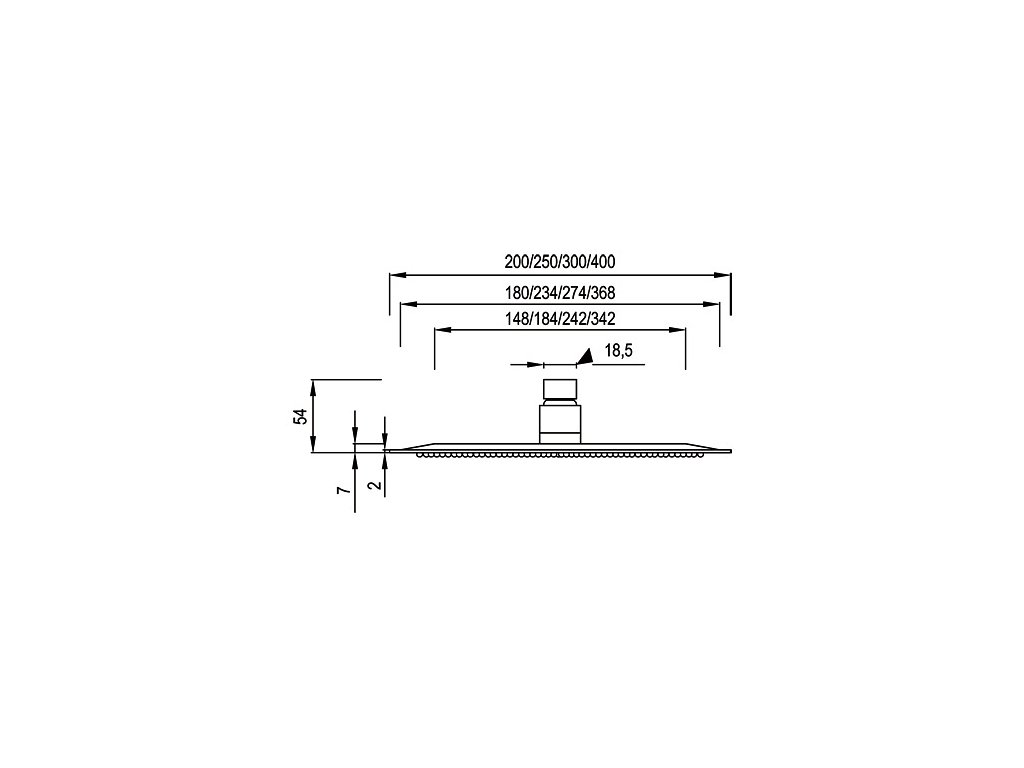 - Hlavová sprcha, kruh o průměru 40 cm