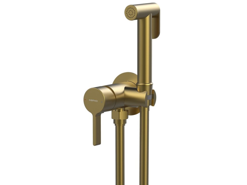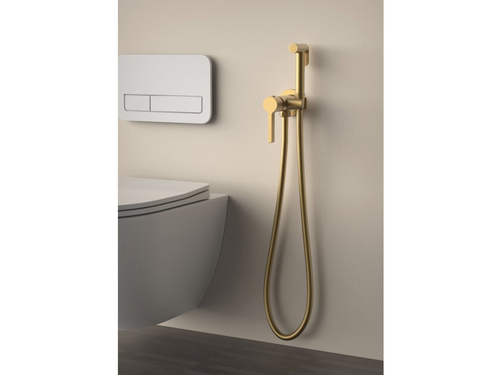 ICONIC podomítková bidetová baterie se Stop sprškou, kulatá, zlato mat
