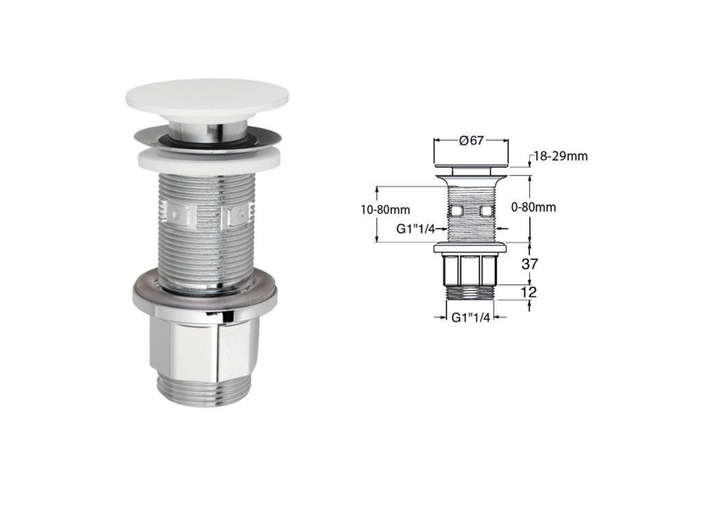 IMPALA umyvadlová výpust 5/4“, click-clack, Rockstone zátka, bílá mat