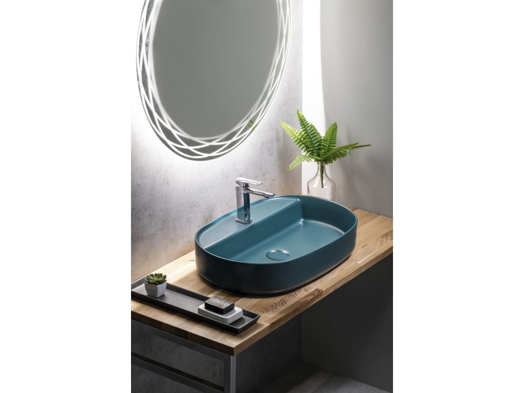 INFINITY OVAL keramické umyvadlo na desku, 60x40cm, zelená petrol