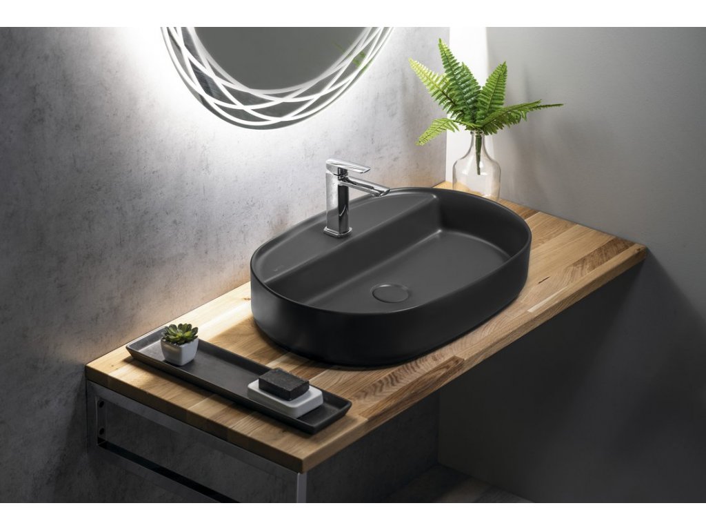 INFINITY OVAL keramické umyvadlo na desku; 60x40cm; antracit
