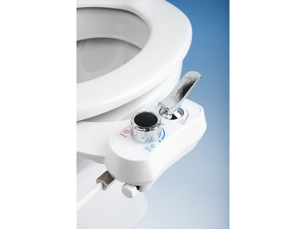 Intimus Mini EvoPřídavný universální bidet INTIMUS MINI Evo je navržen pro instalaci pod WC sedátko. Nový vylepšený upínací mechanismus 360° stavitelných podložek s centrálním otvorem umožňuje snadnou a rychlou instalaci bez potřeby demontáže WC sedátka. Inovativní systém zcela zapuštěných samočistících výsuvných trysek pro nejvyšší možný hygienický standard. Anatomicky tvarovaná páková baterie s keramickou kartuší pro precizní nastavení teploty a tlaku vody . Bidet je primárně určen pro připojení současně k TUV a SV, dodaná záslepka pro uzavření vstupu TUV rovněž umožňuje bidet provozovat dočasně čí trvale v režimu pouze studené vody (viz. mikrotrysky)