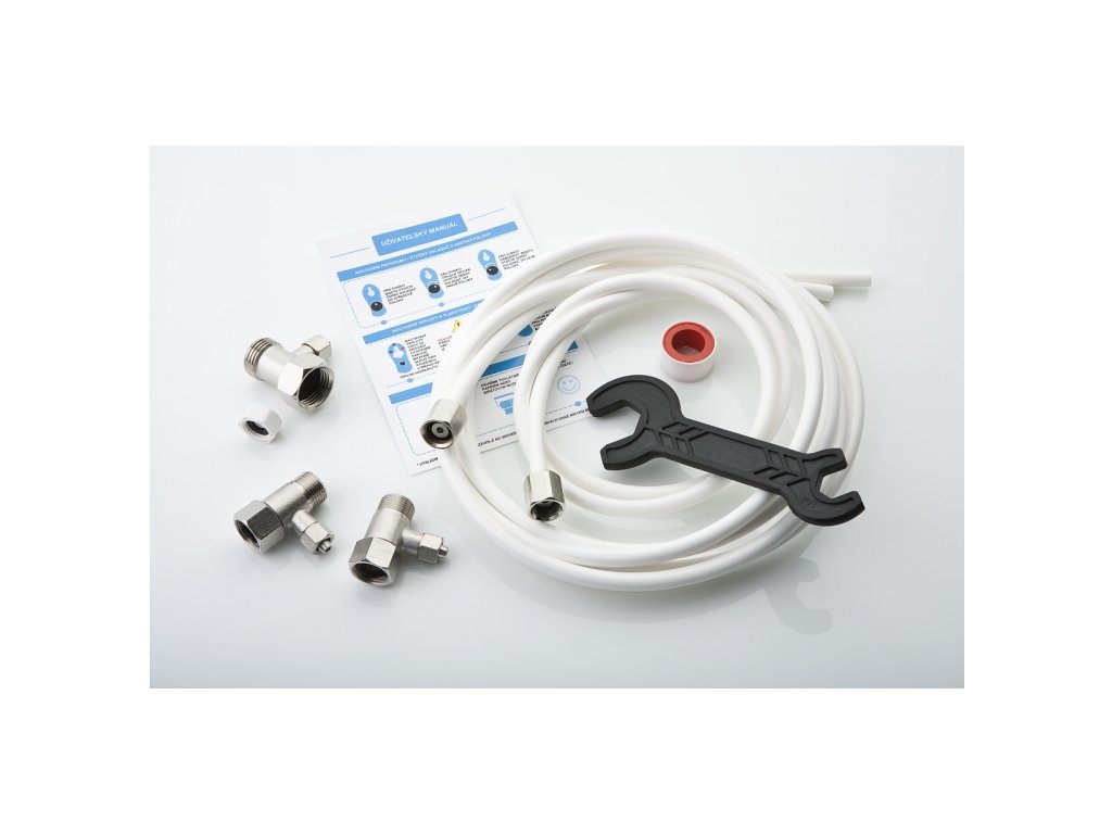 Obsah dodávkyBidet, hadička 3 metry vcelku s originál maticemi na obou koncích, 3× redukce pro připojení hadičky k vodě, montážní páska