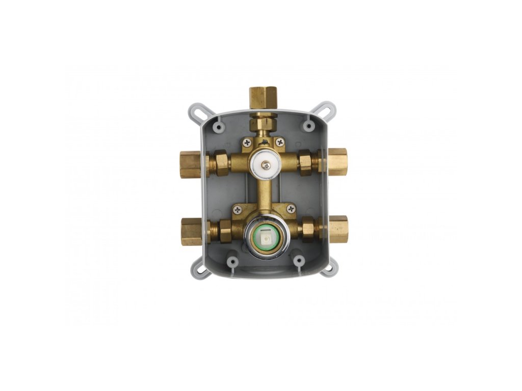 Podomítkový box SLIM – třícestný Balení: plastový box, tělo baterie, montážní kryt, mosazný chromovaný kryt, ovládací páka, přepínač. Jednoduchá montáž. Možnost výměny tělesa baterie bez nutnosti bourání. Ovládací páka v designu řady SLIM