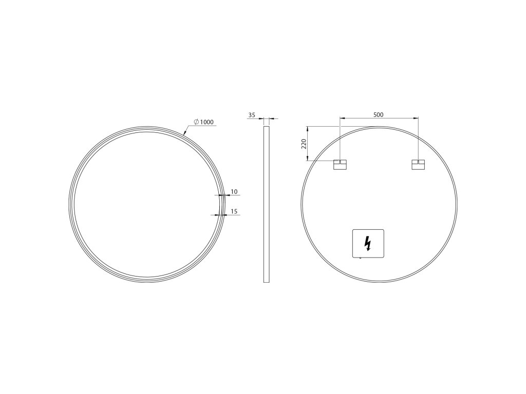 KADRIS kulaté zrcadlo s LED osvětlením ø 100cm; černá mat
