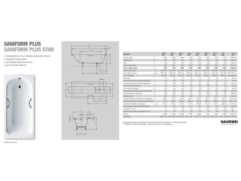 Kaldewei Saniform Plus 363–1 – 111830003001 PERL EFFEKT + ANTISLIPVana bude dodána včetně povrchové úpravy PERL EFFEKT a protiskluzové úpravy ANTISLIP