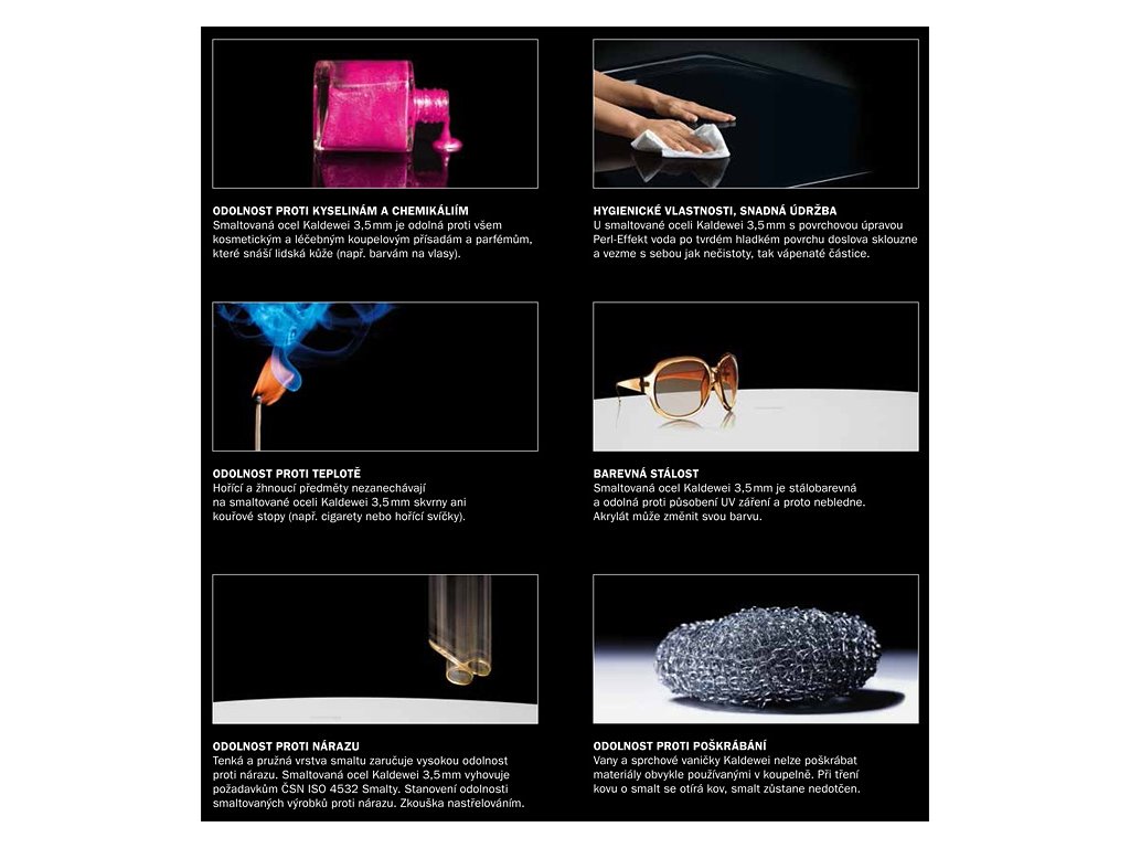 Perl-Effekt je speciální povrchová úprava, která se trvale spojuje při teplotě nad 200°C se smaltovaným povrchem van. Voda s povrchu opatřeného Perl-Effektem nestéká, ale doslova se skutálí do odpadu a odnáší s sebou veškeré nečistoty i vápenaté částice. Perl-Effekt tak výrazně usnadňuje čištění van, které se stává doslova hračkou. Po koupeli většinou stačí povrch opláchnout teplou vodou a utřít do sucha měkkým hadrem, v případě silnějšího znečištění pak omýt běžnými saponáty. Na čištění van s Perl-Effektem nesmějí být používány agresivní čisticí prostředky obsahující brusné částice. S Perl-Effektem je možno dodat všechny vany, vyrobené ze smaltované oceli 3,5 mm.