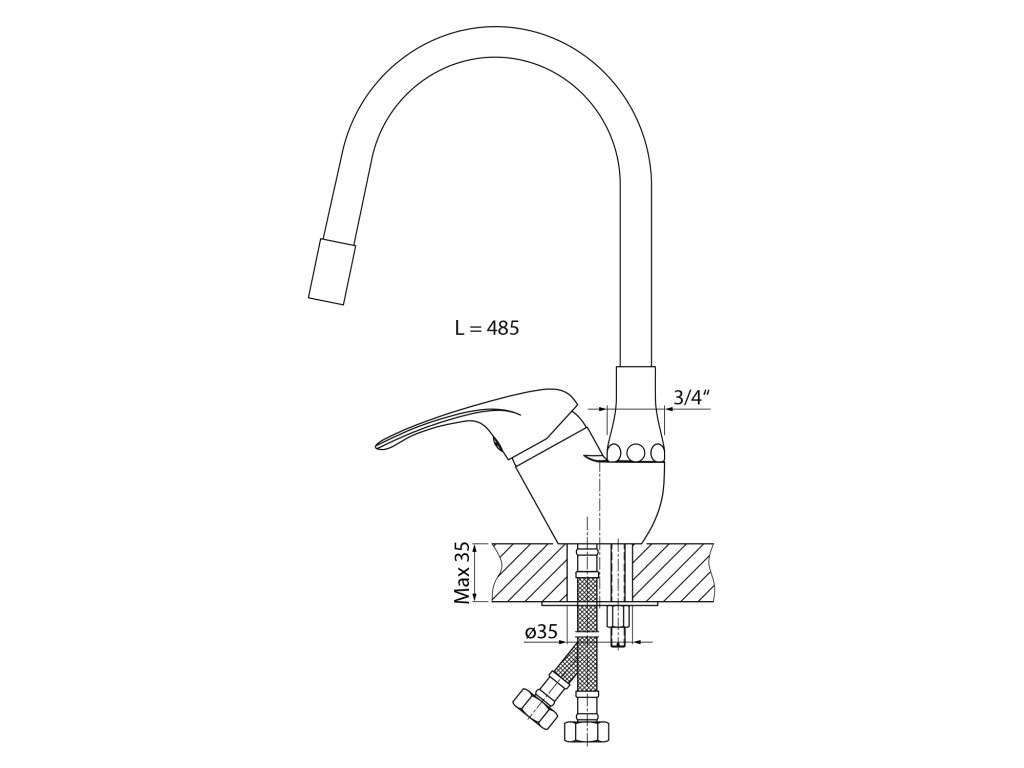 KASIOPEA 35 stojánková dřezová baterie, flexibilní ramínko, chrom/černá mat
