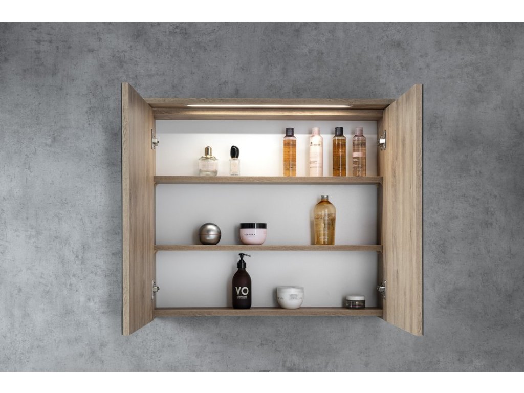 KAWA STRIP galerka s LED osvětlením 80x70x22cm, dub emporio
