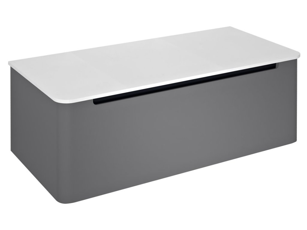 Lakovaná série nábytku KERALA pro umyvadla na postavení v moderních matných barvách se vyznačuje výrazným designovým prvkem - zaoblenými boky a čelem zásuvky. Skříňky jsou jednozásuvkové, bezúchytkové a s plynulým dovíráním. V nabídce jsou 2 typy desek o tl.12 mm: bílá matná Rockstone a černá matná kompaktní deska PREMIO z vysokotlakého laminátu. Umyvadlo na desku lze libovolně umístit po celé šířce skříňky. Umyvadlové skříňky nabízíme v šířkách 80, 100, 120 a 140 cm a lze je doplnit o vysokou dvířkovou skříňku ve stejném oblém designu.