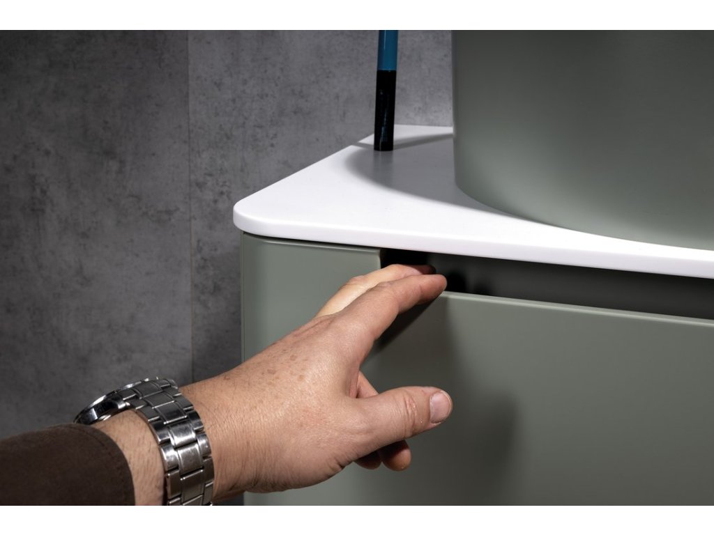 Lakovaná série nábytku KERALA pro umyvadla na postavení v moderních matných barvách se vyznačuje výrazným designovým prvkem - zaoblenými boky a čelem zásuvky. Skříňky jsou jednozásuvkové, bezúchytkové a s plynulým dovíráním. V nabídce jsou 2 typy desek o tl.12 mm: bílá matná Rockstone a černá matná kompaktní deska PREMIO z vysokotlakého laminátu. Umyvadlo na desku lze libovolně umístit po celé šířce skříňky. Umyvadlové skříňky nabízíme v šířkách 80, 100, 120 a 140 cm a lze je doplnit o vysokou dvířkovou skříňku ve stejném oblém designu.