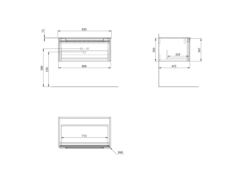 KERALA umyvadlová skříňka 80x35x47,5cm, 1x zásuvka, antracit matný