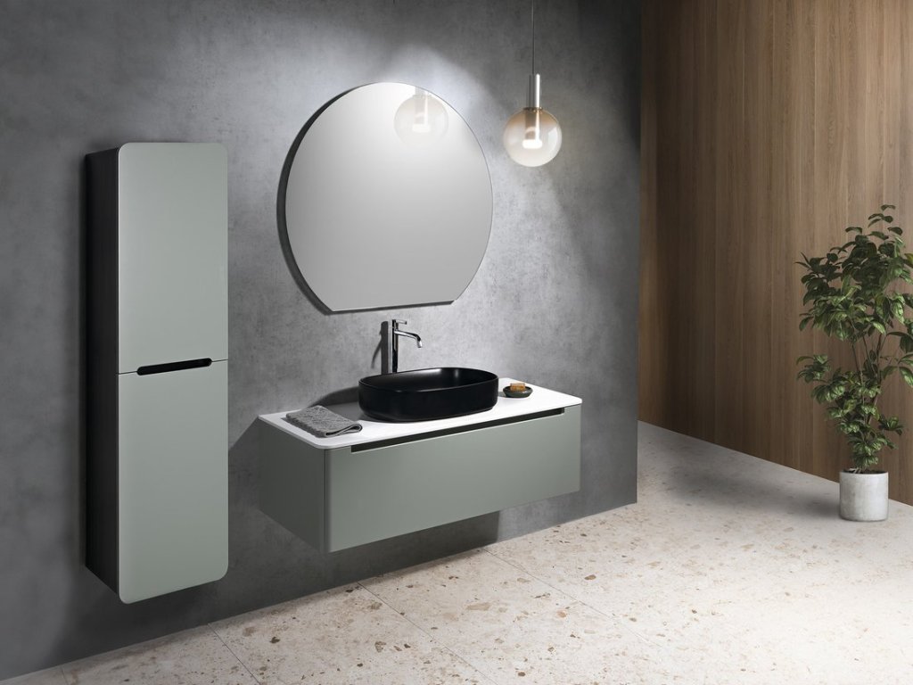 Lakovaná série nábytku KERALA pro umyvadla na postavení v moderních matných barvách se vyznačuje výrazným designovým prvkem - zaoblenými boky a čelem zásuvky. Skříňky jsou jednozásuvkové, bezúchytkové a s plynulým dovíráním. V nabídce jsou 2 typy desek o tl.12 mm: bílá matná Rockstone a černá matná kompaktní deska PREMIO z vysokotlakého laminátu. Umyvadlo na desku lze libovolně umístit po celé šířce skříňky. Umyvadlové skříňky nabízíme v šířkách 80, 100, 120 a 140 cm a lze je doplnit o vysokou dvířkovou skříňku ve stejném oblém designu.