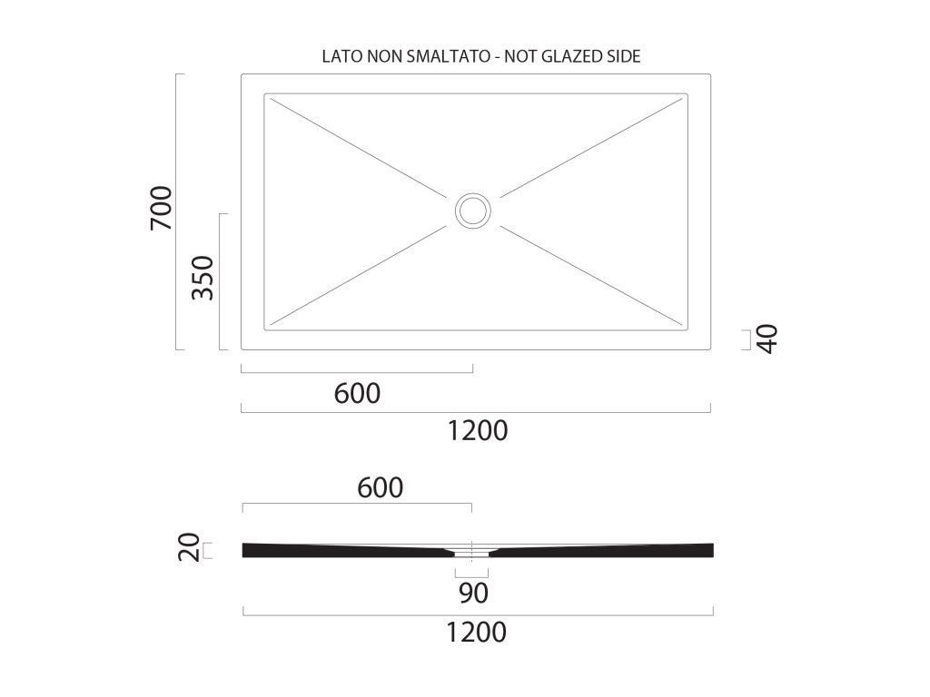 Boky vaniček, které jsou neglazované (určené k zazdění do zdi, či pod obklad), jsou na technickém výkresu označeny "not glazed side".