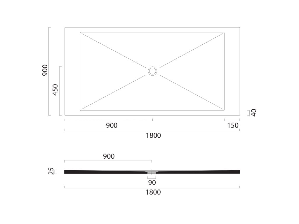 Keramická sprchová vanička, obdélník 180x90x2cm, agave mat