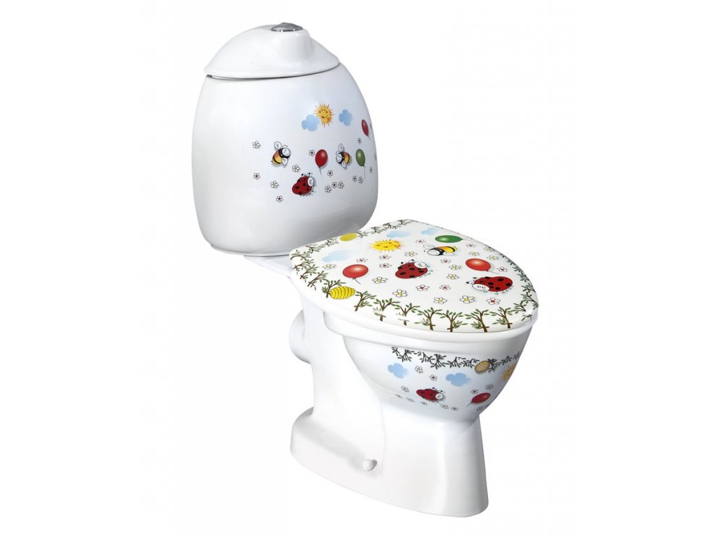 Série dětské keramiky KID je vhodná nejen pro jesle či mateřské školky, ale nalezne své místo i ve standardní koupelně a všude tam, kde je běžná keramika pro děti příliš velká. Lze volit bílou keramiku nebo veselý barevný potisk, který jistě vykouzlí úsměv na tvářích všech malých uživatelů.