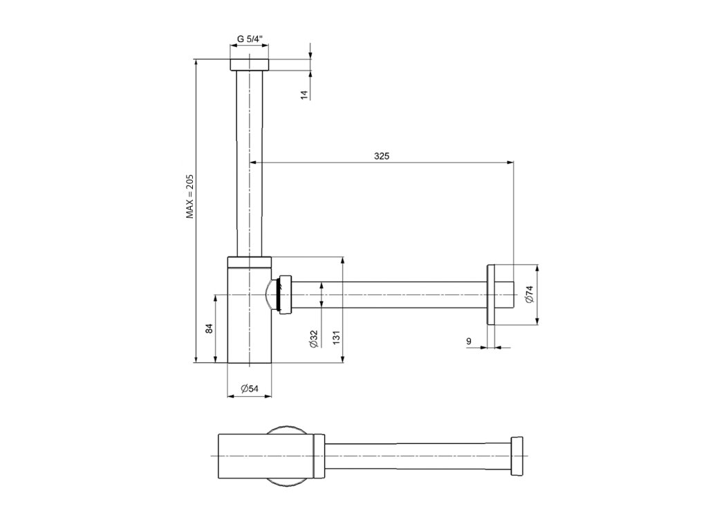 KING umyvadlový sifon 5/4", odpad 32 mm, ABS/černá mat