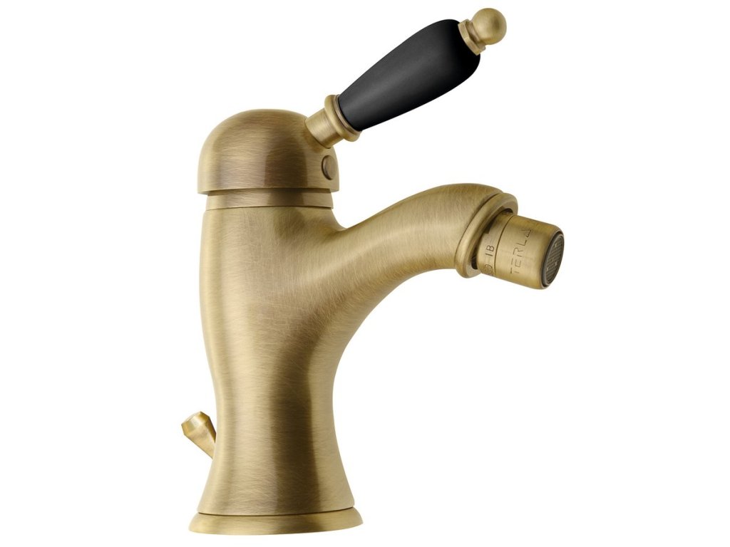 KIRKÉ BLACK stojánková bidetová baterie s výpustí, černá páčka, bronz