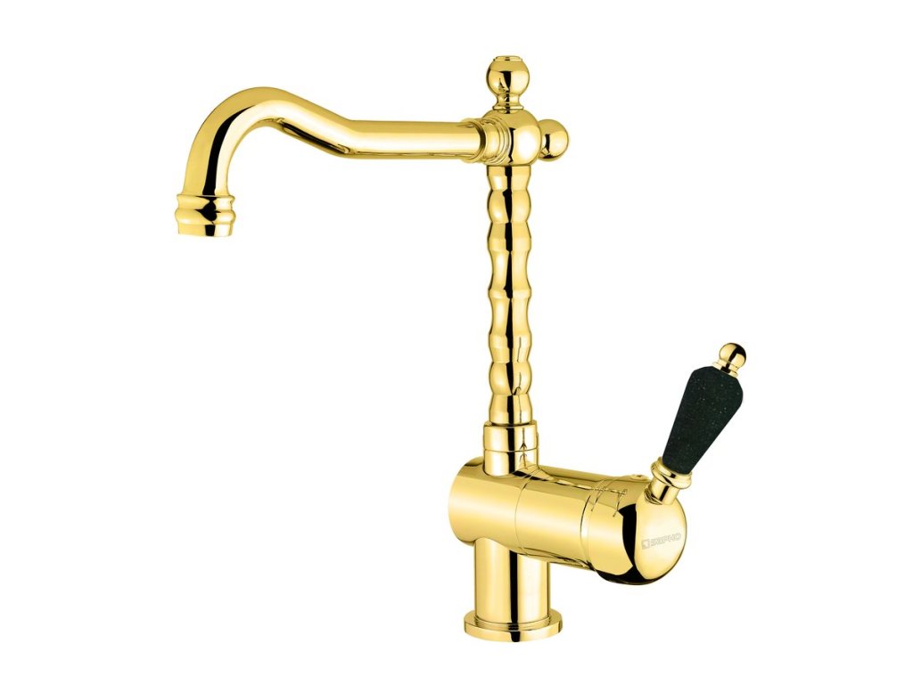 KIRKÉ BLACK stojánková dřezová baterie, černá páčka, zlato