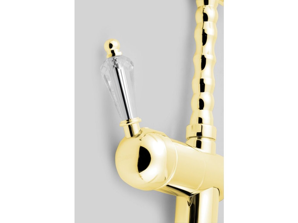 KIRKÉ CRYSTAL stojánková dřezová baterie, páčka krystal, zlato