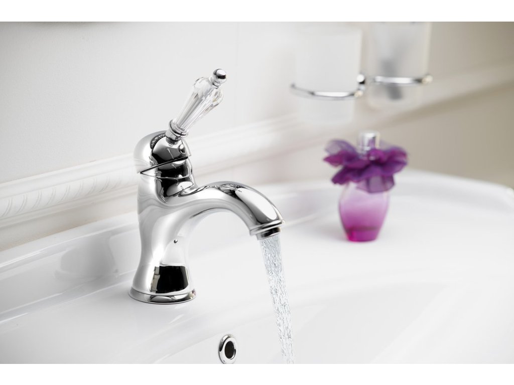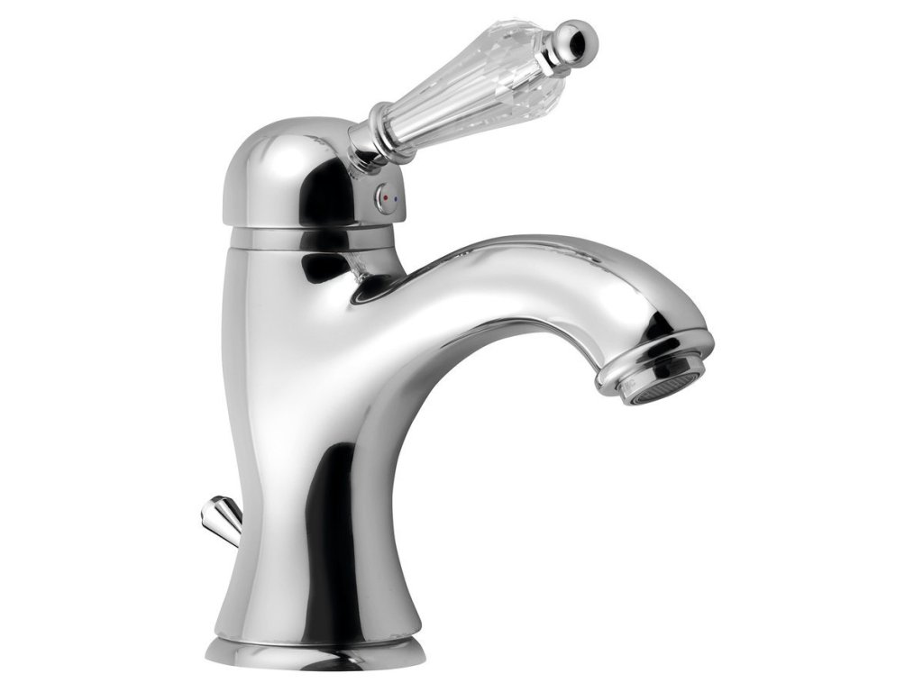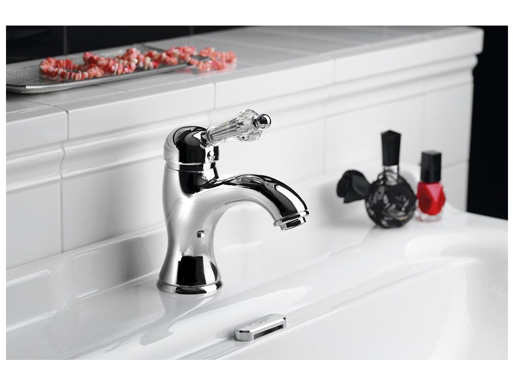 KIRKÉ CRYSTAL stojánková umyvadlová baterie s výpustí, páčka krystal, chrom