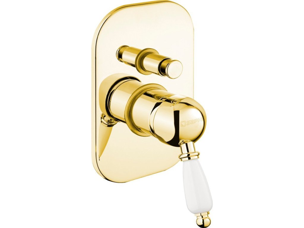 KIRKÉ WHITE podomítková sprchová baterie, 2 výstupy, bílá páčka, zlato