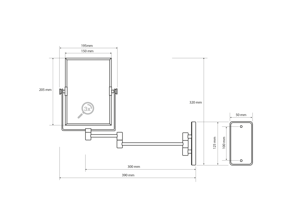 Kosmetické zrcátko závěsné, 150x205mm, oboustranné, chrom