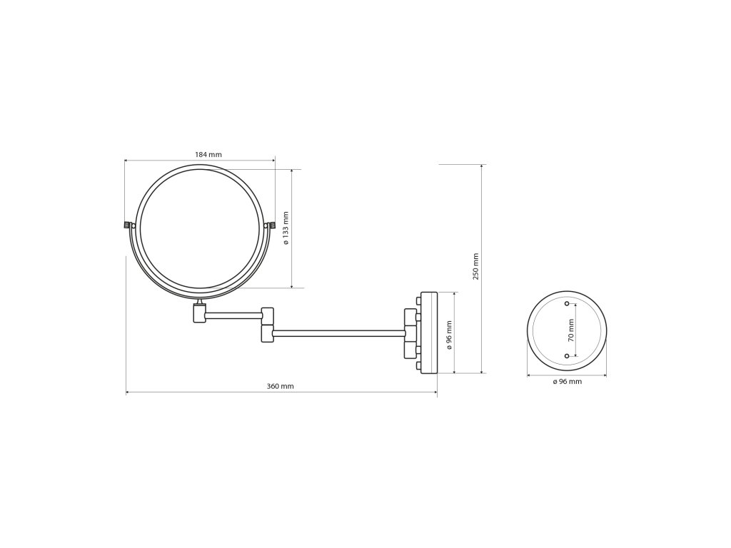 Kosmetické zrcátko závěsné, Ø 140mm, oboustranné, chrom