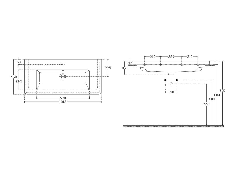 Umyvadlo hranaté 100x18x45 cm s přepadem