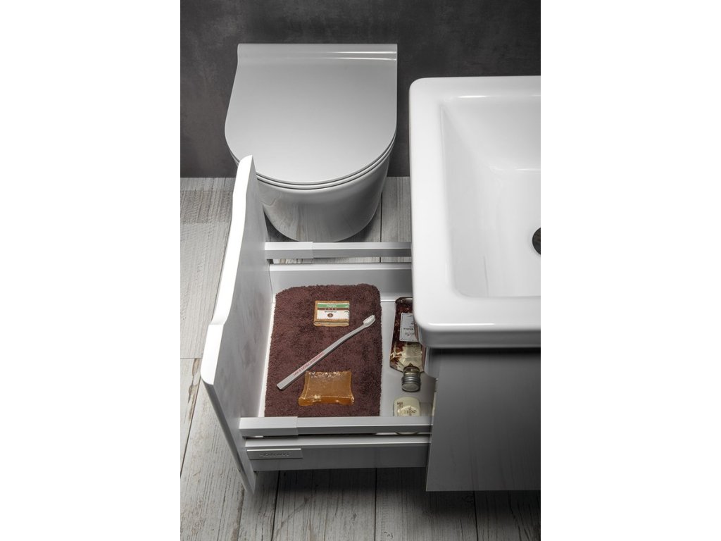 Nábytek je vybaven mechanismem zpomalovacích pantů u dvířek. Dvířka stačí jen lehce postrčit a ona se již sama dovřou.