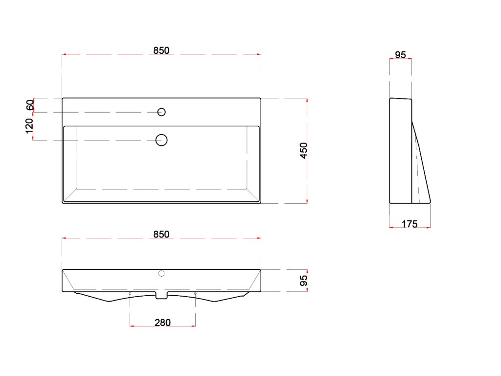 Umyvadlo na zeď nebo na desku 83 x 44cm, litý mramor