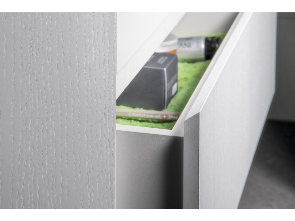 Nábytek je vybaven pojezdy zásuvek s pomalým dojezdem a systémem automatického dovření zásuvek. Již žádné hlučné dovírání.