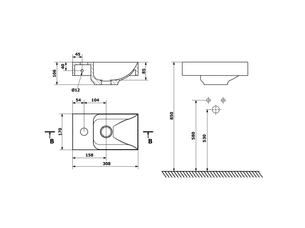 Nejmenší umyvátko 30 x 17 cm pravé