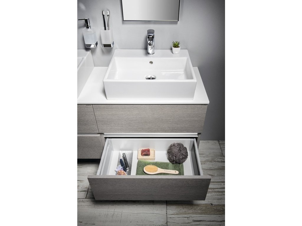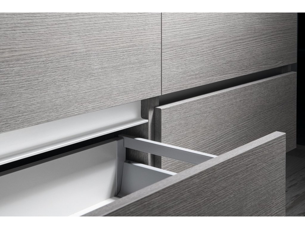 Nábytek je vybaven pojezdy zásuvek s pomalým dojezdem a systémem automatického dovření zásuvek. Již žádné hlučné dovírání.